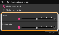 Prilagodba vrijednosti za reprodukciju teksta u boji