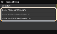 Razinu <Acrobat 10.0 ili ekvivalentno/256-bitni AES> moguće je promijeniti na razinu <Acrobat 9.0 ili ekvivalentno/256-bitni AES> s različitom kompatibilnom verzijom.