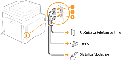 Priključite telefonski kabel u utičnicu za telefonsku liniju na uređaju (
