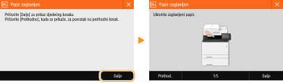 Prilikom uklanjanja zaglavljenog papira nemojte isključivati uređaj.Isključivanjem uređaja brišu se podaci koji se ispisuju. Osobito pripazite kada primate faksove.