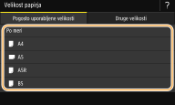 ![]() ![]() Če velikost papirja, ki jo pogosto uporabljate, registrirate za gumbe od <S1> do <S3>, lahko to velikost izberete z enim dotikom. Registracija velikosti papirja po meri