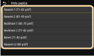Če se ta zaslon ne prikaže, ko naložite papirČe v večnamenski pladenj vedno naložite enak papir, lahko vsakokratno nastavljanje papirja preskočite tako, da velikost in vrsto papirja registrirate kot privzeto nastavitev. Ko registrirate privzeto nastavitev, se zgornji zaslon ne prikaže. Zaslon odprete, tako da izberete <Določi pri nalaganju papirja> (Registracija privzetih nastavitev papirja za večnamenski podstavek).