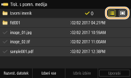 ![]() Če izberete <Datum/Čas (Naraščajoče)> ali <Datum/Čas (Padajoče)>, so datoteke razvrščene na osnovi datumov in časa sprememb datotek.