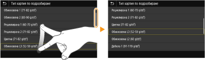 Можете да промените екрана, който се показва автоматично, когато устройството не се използва за определен период от време: <Функция след автоматично нулиране>