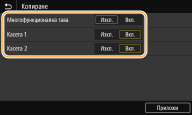 Винаги задавайте <Вкл.> поне за <Касета 1> или <Касета 2>. Ако зададете <Изкл.> и за двете, няма да можете да завършите процедурата за настройка.