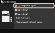 Po uložení nastavenia predvoleného papiera sa pri vložení papiera nezobrazí okno nastavenia papiera a vždy sa použije rovnaké nastavenie. Ak vložíte papier inej veľkosti alebo typu bez zmeny nastavení papiera, zariadenie nemusí tlačiť správne. Aby ste zabránili tomuto problému, vyberte v kroku 3 položku <Určiť pri vklad. papiera> a potom vložte papier.