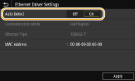 Ethernet זהו תקן לתקשורת נתונים ברשת תקשורת מקומית (LAN). ניתן להגדיר את מצב התקשורת וסוג ה-Ethernet. באופן כללי, ניתן להשתמש במכשיר ללא שינוי הגדרות ברירת המחדל (<Ethernet Driver Settings>), אך באפשרותך לשנות הגדרות אלו כך שיתאימו לסביבת הרשת שלך.