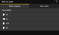 ![]() ![]() Si deseu la mida de paper que utilitzeu freqüentment als botons <S1> a <S3>, podeu recuperar-los mitjançant tecles abreujades. Desament d'una mida de paper personalitzada