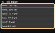 Si la pantalla que es mostra més amunt no apareix quan carregueu paper.Si sempre carregueu el mateix paper a la safata multiús, podeu ometre les operacions d'ajust del paper desant la mida i el tipus de paper com a opció predeterminada. No obstant això, quan es desa l'opció predeterminada, la pantalla que es mostra més amunt no apareix. Per visualitzar la pantalla, seleccioneu <Especificar en carregar paper> (Desament de les opcions de paper predeterminades per a la safata multiús).