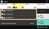 Primer cal que especifiqueu la mida i el tipus de paper carregat a l'origen del paper.