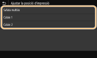 Si un document s'imprimeix descentrat o fora de l'espai d'impressió, ajusteu la posició d'impressió. Podeu ajustar la posició d'impressió per a cada origen del paper. Podeu ajustar la posició d'impressió en l'interval -5,0 a +5,0 mm en increments de 0,1 mm.