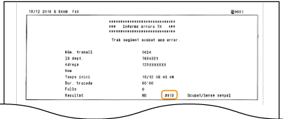 Si es produeix un error, com ara quan la impressió no és satisfactòria o quan no podeu enviar ni rebre cap fax ni original llegit, el codi d'error corresponent es mostra en un informe o a la pantalla del registre de treballs en forma de número de tres xifres. Comproveu la llista següent per trobar les causes i solucions de cada codi d'error. Per saber com imprimir un informe d'error i la informació de l'informe, vegeu