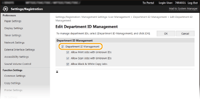 کادر انتخاب [Department ID Management] را علامت بزنید.