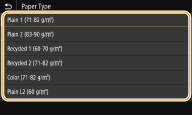 اگر صفحه نشان داده شده در بالا زمان بارگذاری کاغذ نشان داده نشوداگر همیشه یک نوع کاغذ در سینی چند منظوره بارگذاری می کنید، می توانید با ثبت اندازه و نوع کاغذ به عنوان تنظیم پیش فرض، از عملیات تنظیم کاغذ رد شوید. به هر حال زمانی که تنظیم پیش فرض ثبت شد، صفحه نشان داده شده در بالا نمایش داده نمی شود. برای نمایش صفحه، <Specify When Loading Paper> (ثبت تنظیمات کاغذ پیش فرض برای سینی چند منظوره) را انتخاب کنید.