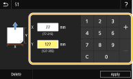<X> یا <Y> را انتخاب کنید و طول هر طرف را با استفاده از کلیدهای عددی وارد کنید.