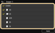 می توانید مطمئن باشید فقط اندازه های کاغذی که اغلب استفاده می شوند در زبانه <Frequently Used Sizes> صفحه انتخاب تنظیم اندازه کاغذ نشان داده می شوند.