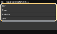 ویژگی انتخاب خودکار منبع کاغذ برای هر منبع کاغذ را فعال یا غیرفعال کنید. اگر این ویژگی بر روی <On> تنظیم باشد، دستگاه به طور خودکار یک منبع کاغذ انتخاب می کند که با اندازه مناسب برای هر کار چاپی بارگذاری شود. همینطور زمانی که کاغذ موجود در منبع کاغذ انتخابی تمام شود، این ویژگی با تغییر از این منبع کاغذ به منبع دیگری که با همین اندازه کاغذ بارگذاری شده به چاپ کردن ادامه می دهد.