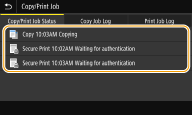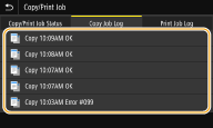 زمانی که <Display Job Log> بر روی <Off> تنظیم باشد، نمی توانید کار کپی را بررسی کنید. <Display Job Log>