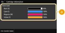 مقدار باقیمانده کارتریج تونر را نشان می دهد. ممکن است قبل از تمام شدن تونر، سایر بخش های داخلی به پایان عمر خود برسند.