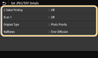 ![]() برای فایل PDF، می توانید 9 یا 16 صفحه از داده تصویر را در یک طرف برگ کاغذ و با استفاده از <N on 1> از قسمت <Set PDF Details> چاپ کنید.