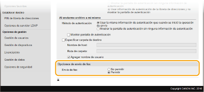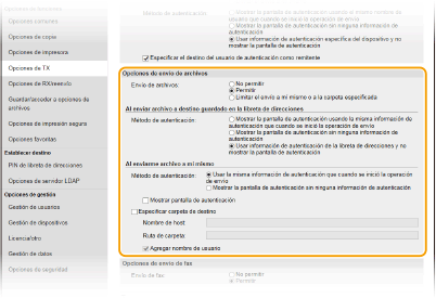 Cuando se especifique [Permitir] en [Envío de archivos]