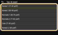 Si la pantalla anterior no aparece cuando hay papel cargadoSi siempre carga el mismo papel en la bandeja multiuso, puede omitir las operaciones de configuración del papel registrando el tamaño y el tipo de papel como opción predeterminada. Sin embargo, si se registra la opción predeterminada, la pantalla anterior no aparecerá. Para visualizar la pantalla, seleccione <Especificar cuando cargue papel> (Registro de las opciones de papel predeterminadas para la bandeja multiuso).