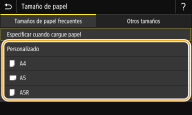 ![]() ![]() Si registra el tamaño de papel que utiliza con más frecuencia en los botones <S1> a <S3>, puede recuperarlo con una tecla abreviada. Registro de tamaños de papel personalizados
