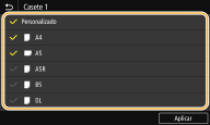 Los tamaños de papel que no estén marcados podrán visualizarse seleccionando la pestaña <Otros tamaños> en la pantalla de selección de la opción de tamaño del papel.