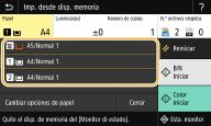 Seleccione <Imp. desde disp. de mem.> en la pantalla Inicio. Pantalla Inicio
