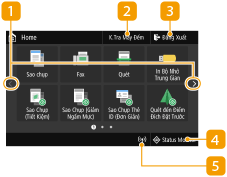 <Status Monitor>Nhấn để kiểm tra tình trạng in, xem lịch sử sử dụng, hoặc xem các cài đặt mạng như địa chỉ IP của máy. Bạn cũng có thể kiểm tra tình trạng của máy, chẳng hạn như số lượng giấy còn lại và lượng mực còn lại trong hộp mực, hoặc bất cứ lỗi nào xảy ra. Màn hình <Status Monitor>