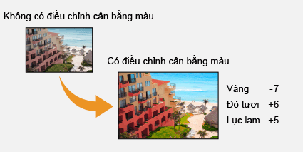 Điều chỉnh các mức độ màu vàng, đỏ tươi, lục lam, hoặc đen.