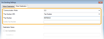 Cài đặt chế độ truyền thông và số fax (hoặc URI), và nhấp vào [OK].