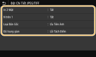 ![]() Đối với tập tin PDF, bạn có thể in 9 hoặc 16 trang dữ liệu hình ảnh trên một mặt của tờ giấy bằng cách sử dụng <N trên 1> bên dưới <Đặt Chi Tiết PDF>.
