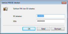[Sahkan] Klik untuk mengesahkan bahawa ID dan PIN yang betul dimasukkan. Fungsi ini tidak boleh didapati jika mesin dan komputer disambungkan melalui port USB atau port WSD (Perkhidmatan Web pada Peranti).