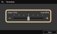 Anda boleh mengubah pelbagai tetapan tentang kebolehkendalian seperti kecerahan skrin: <Kebolehcapaian>