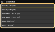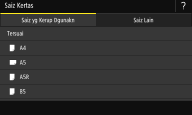 Jika skrin yang ditunjukkan di atas tidak dipaparkan apabila kertas dimuatkanJika anda sentiasa memuatkan kertas yang sama dalam dulang pelbagai guna, anda boleh melangkau operasi tetapan kertas dengan mendaftar saiz dan jenis kertas sebagai tetapan lalai. Apabila tetapan lalai didaftarkan, namun skrin ditunjukkan di atas tidak dipaparkan. Untuk memaparkan skrin, pilih <Tentukan Apabila Memuatkan Kertas> (Mendaftar Tetapan Kertas Lalai untuk Dulang Pelbagai Guna).