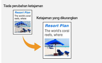 Anda boleh melaraskan ketajaman imej yang disalin. Tingkatkan ketajaman bagi menajamkan teks dan garisan yang kabur atau kurangkan ketajaman bagi memperbaik penampilan foto majalah.