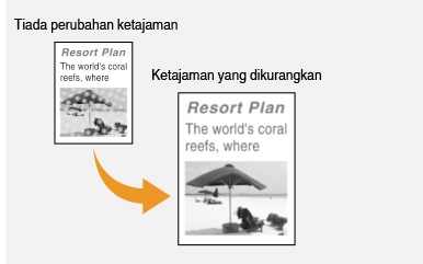 Anda boleh melaraskan ketajaman imej. Tingkatkan ketajaman bagi menajamkan teks dan garisan yang kabur atau kurangkan ketajaman bagi memperbaik penampilan foto majalah. Melaras Ketajaman