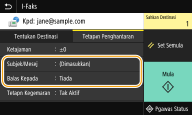 Jika destinasi dipilih daripada <Buku Alamat> dalam skrin Rumah, skrin Ciri Asas untuk penghantaran I-Faks boleh dipaparkan semasa destinasi yang dipilih kekal ditentukan.