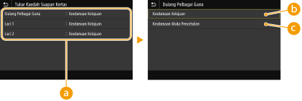 Asterisk (*)Tetapan ditanda dengan "*1" mungkin tidak dipaparkan bergantung pada model yang anda gunakan, pilihan, atau lain-lain item tetapan.