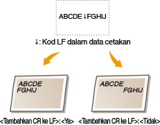 Pilih sama ada mahu menukar antara pencetakan di atas kertas bersaiz A4 dan Surat jika satu daripada saiz kertas dimuatkan tetapi yang lain tidak. Apabila anda memilih <Aktif>, jika anda menentukan kertas bersaiz A4 untuk dicetak daripada komputer tetapi kertas bersaiz A4 tidak dimuatkan dalam mesin, ia akan mencetak dokumen anda di atas kertas bersaiz Surat.
