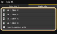 Apabila <Papar Log Kerja> ditetapkan kepada <Tak Aktif>, anda tidak boleh menyemak log untuk dokumen yang dihantar. <Papar Log Kerja>