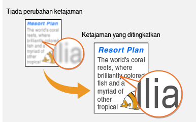 Anda boleh melaraskan ketajaman imej. Tingkatkan ketajaman bagi menajamkan teks dan garisan yang kabur atau kurangkan ketajaman bagi memperbaik penampilan foto majalah.