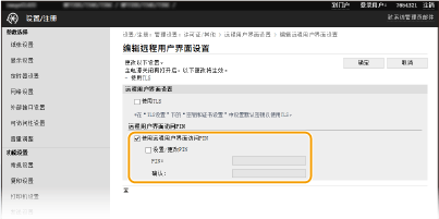 选中 [使用远程用户界面访问PIN] 复选框,然后设置 PIN。