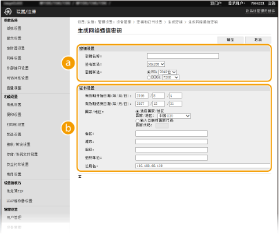 按照以下顺序输入证书有效期的开始日期:年、月、日。无法设置早于 [有效期开始日期(年/月/日)] 的日期。