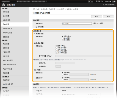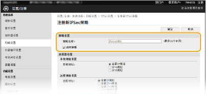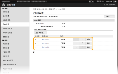 使用操作面板也可从主页画面中的 <菜单> 启用或禁用 IPSec 通信。<使用IPSec>