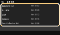 可从本机的操作面板检查固件版本。完成固件更新操作后,请确定正确执行更新。 检查固件版本