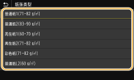 如果装入纸张时未显示以上画面如果一直将相同的纸张装入多功能托盘,可以通过将纸张尺寸和类型注册为默认设置来跳过纸张设置操作。不过,注册了默认设置时,将不会显示以上画面。若要显示此画面,请选择 <装入纸张时指定> (为多功能托盘注册默认的纸张设置)。