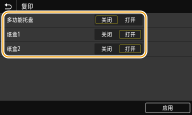 始终至少将 <纸盒1> 或 <纸盒2> 指定为 <打开>。如果将两者都指定为 <关闭>,则无法完成设置步骤。