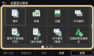 可以向主页画面添加常用功能的快捷键,如 <复印>、<传真> 和 <扫描>。例如,可以通过将一系列设置(如“扫描原稿两面,保存为高压缩 PDF 文件并通过电子邮件发送”)分配给单个按钮来提高任务的执行速度和效率。